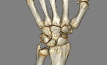 CT画像のデータから骨だけのデータだけを3次元表示しています。骨折や変形の全体像の把握に適しています。