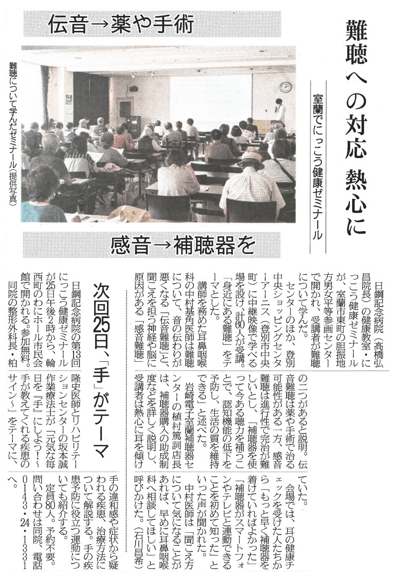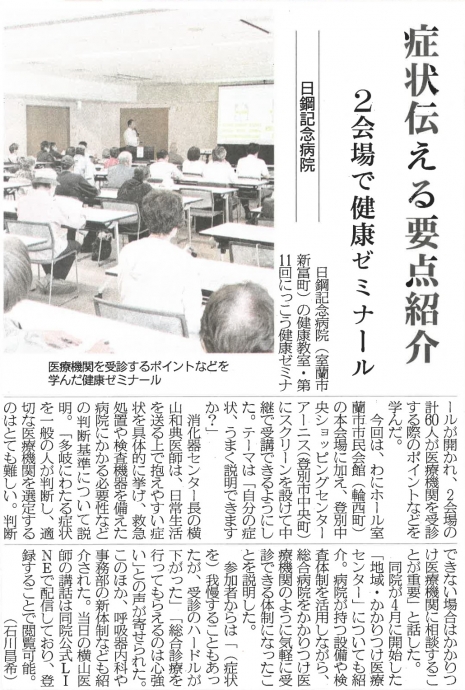 日鋼記念病院 市民向け健康教室