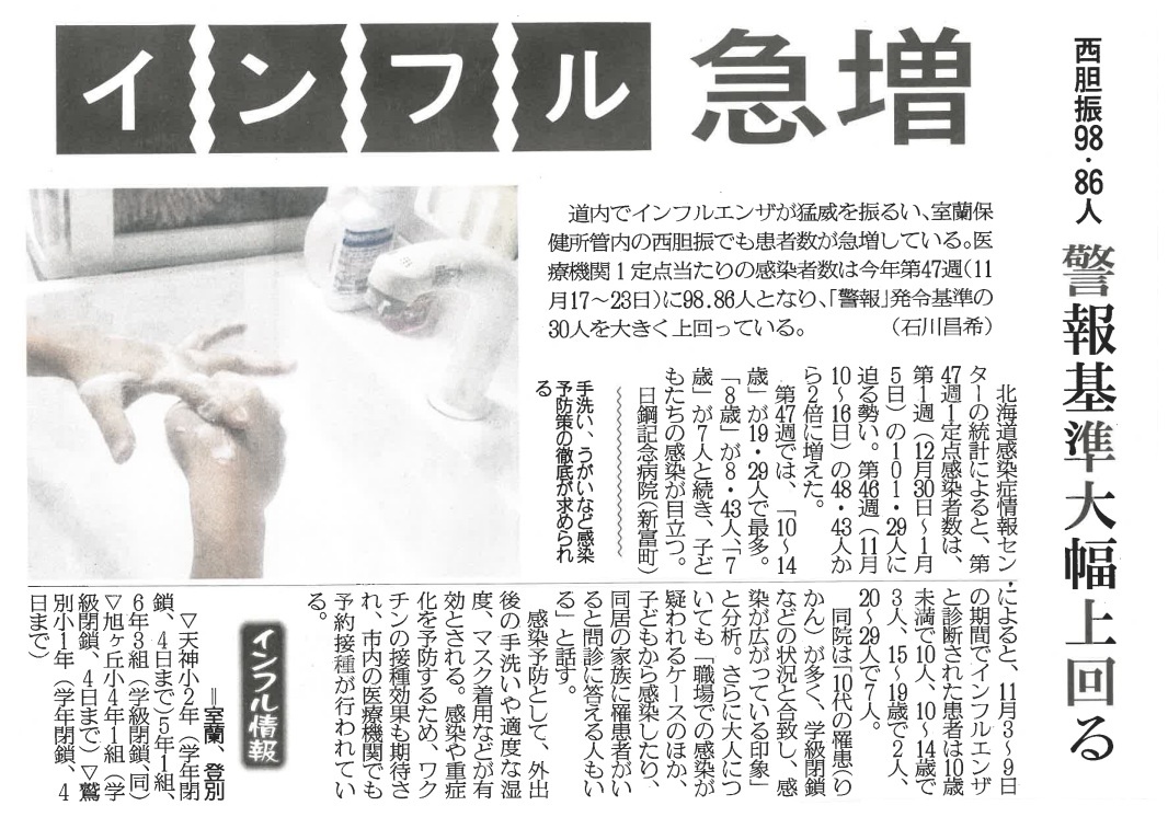 室蘭 インフルエンザ警報発令