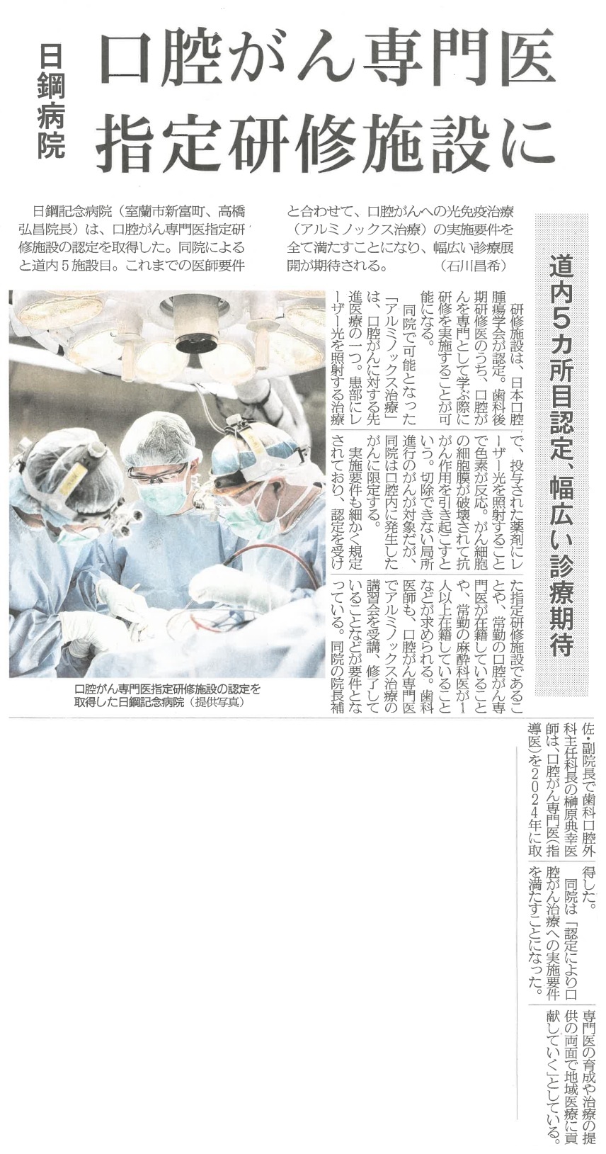 口腔がん専門医指定研修施設(アルミノックス治療実施へ向けて)