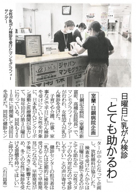 マンモグラフィ―サンデーin日鋼記念病院2025