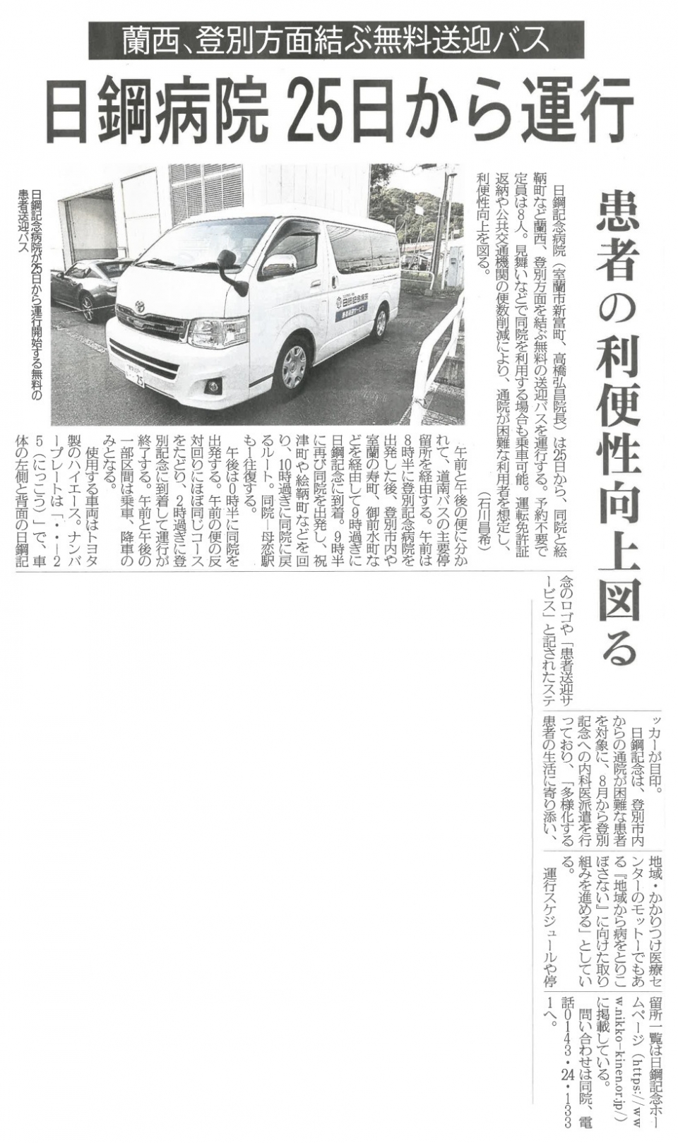 無料患者送迎バス運行スタート