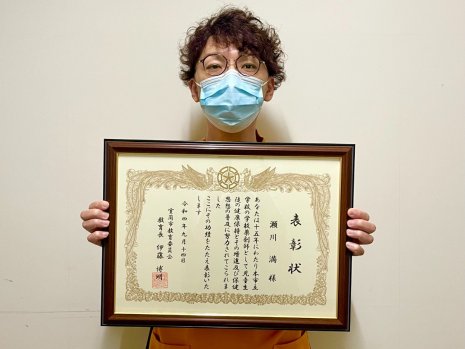 これは、瀨川薬剤師が15年にわたって室蘭市児童の健康の保持増進および保健教育の振興に貢献してきたとするもので、室蘭市教育委員会より表彰状が授与されました。
