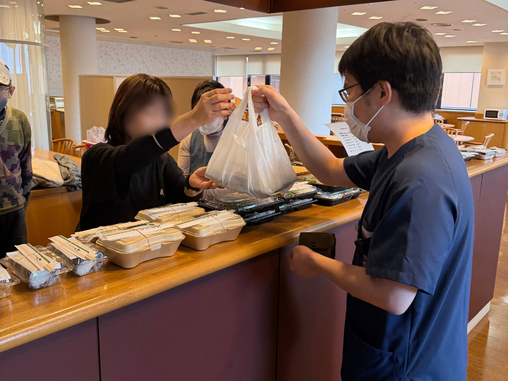 今年の9月末日に閉店した当院レストランの跡地(2F休憩スペース)を活用し、室蘭・登別市内のお店に協力いただき、お弁当販売を行っています。購入後のお弁当は、2F休憩スペースや1F休憩スペースで飲食可能です。