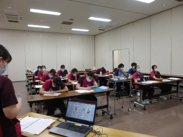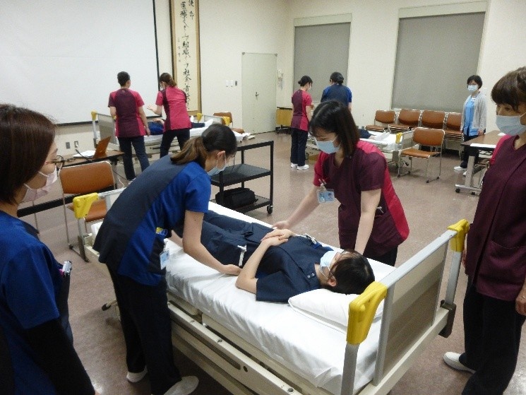 感染管理認定看護師らが講師になり、看護ケア実践に際して必要な感染予防技術を学びます。