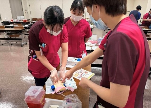 | 夏~秋ごろ | 病棟BLS実習 | 自分たちが勤務する病棟での一次救命処置に対応できるよう学びます。 |