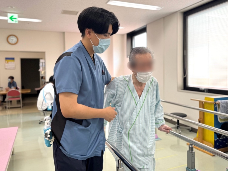 病気やけがの患者さんに対し、低下した筋力や柔軟性、バランス能力の向上を図り、「座る・立つ・歩く」などの基本的な動作を高めていきます。ケースに応じてホットパックや低周波治療、腰や首の牽引などの物理療法を実施することもあります。また、呼吸器や循環器疾患の患者さんに対しても呼吸機能の改善を図り、運動に対する耐久性を高めていきます。また、退院に向け必要に応じて退院前に自宅訪問をし、各部門と協力しながら、手すりの設置や段差解消などのお手伝いもしています